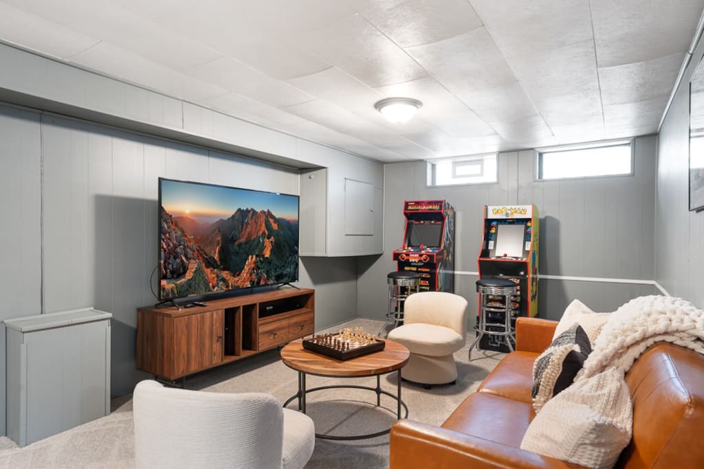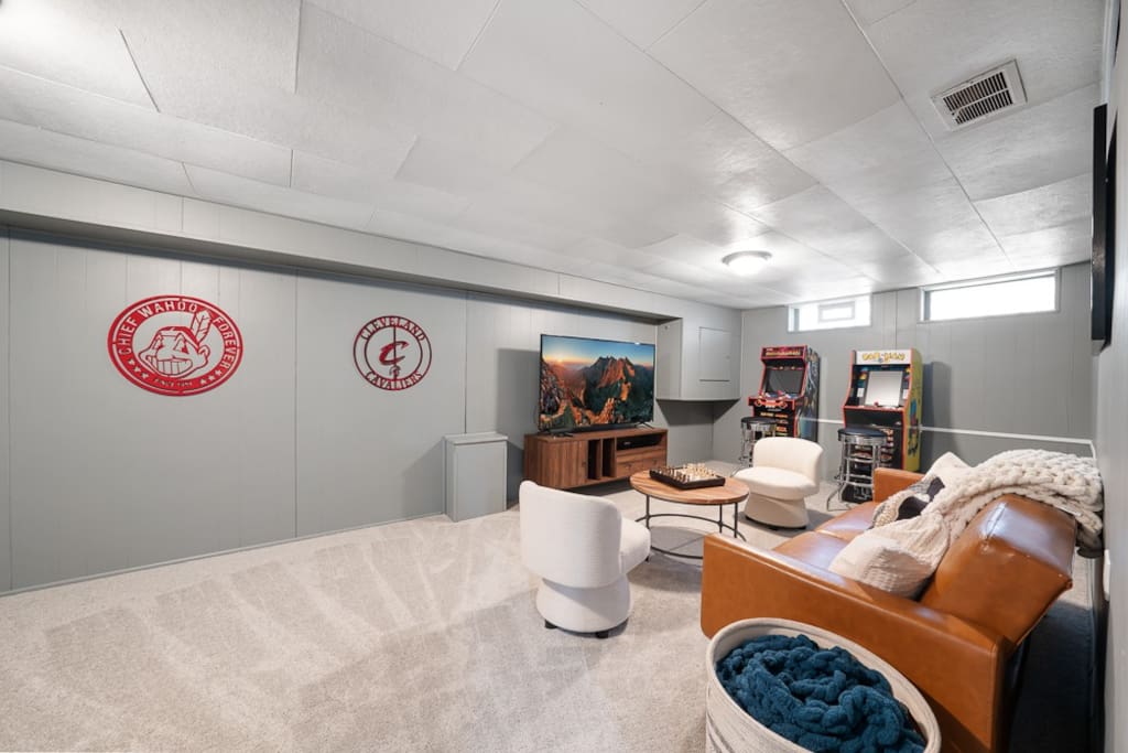 🛏 Spacious Accommodations Each of the four bedrooms is thoughtfully furnished to provide a restful retreat after a busy day. Whether you're here with friends, family, or colleagues, everyone will have their own space to relax. 🎮 Entertainment for All Ages Step into the game room and enjoy classic arcade games that are sure to bring out your competitive side. It’s the perfect way to unwind and create lasting memories. 🍳 Fully Updated Living Spaces The modern kitchen is fully equipped with everything you need to cook and dine in style. Comfortable living areas provide space to gather, and the sleek decor adds a touch of luxury to your stay. 🚗 Prime Location Explore Cleveland’s top attractions, including the Rock and Roll Hall of Fame, Progressive Field, and the West Side Market, all just a short drive away. With the airport nearby, you’ll also enjoy stress-free travel. Starter Kit We supply the house with 1 roll of paper towels, trash bag in each trash can, toilet paper in each bathroom and 2 packages of coffee for our drip coffee maker. Book your stay today and experience comfort, style, and fun all in one place!
