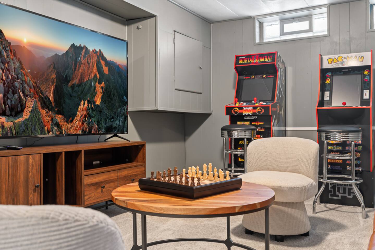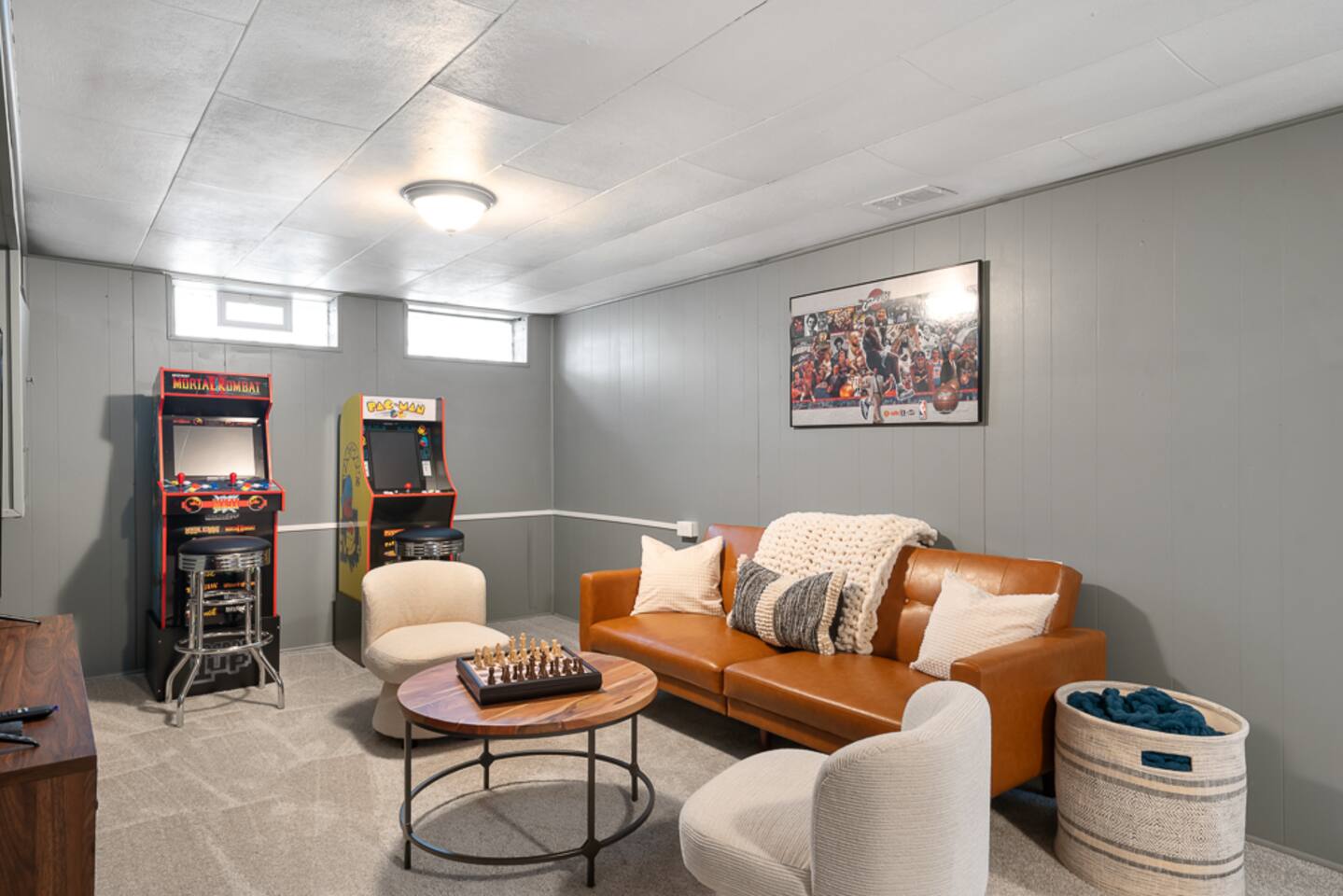 🛏 Spacious Accommodations Each of the four bedrooms is thoughtfully furnished to provide a restful retreat after a busy day. Whether you're here with friends, family, or colleagues, everyone will have their own space to relax. 🎮 Entertainment for All Ages Step into the game room and enjoy classic arcade games that are sure to bring out your competitive side. It’s the perfect way to unwind and create lasting memories. 🍳 Fully Updated Living Spaces The modern kitchen is fully equipped with everything you need to cook and dine in style. Comfortable living areas provide space to gather, and the sleek decor adds a touch of luxury to your stay. 🚗 Prime Location Explore Cleveland’s top attractions, including the Rock and Roll Hall of Fame, Progressive Field, and the West Side Market, all just a short drive away. With the airport nearby, you’ll also enjoy stress-free travel. Starter Kit We supply the house with 1 roll of paper towels, trash bag in each trash can, toilet paper in each bathroom and 2 packages of coffee for our drip coffee maker. Book your stay today and experience comfort, style, and fun all in one place!